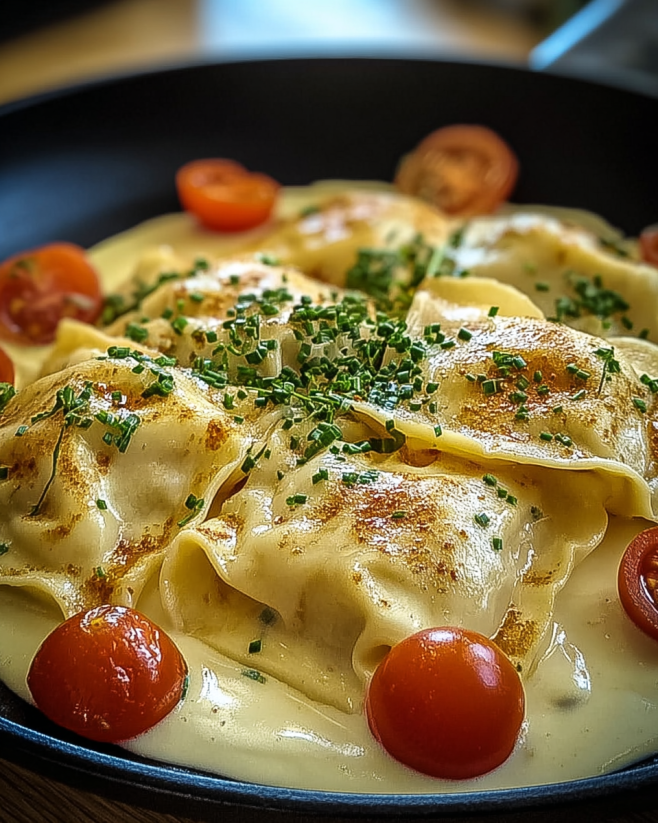 Maultaschen in Käse Sahne Soße sind ein Genuss!